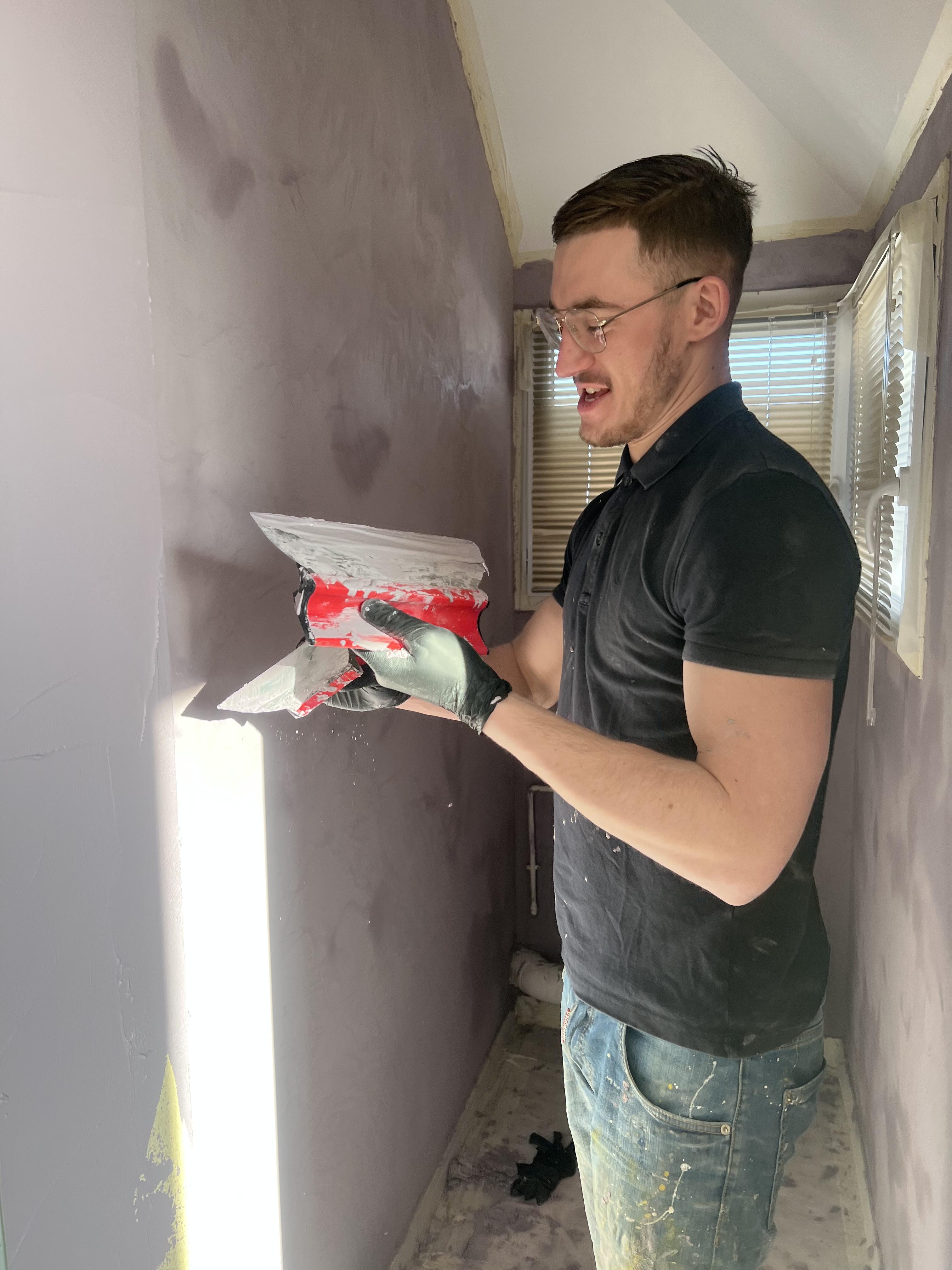 Réalisation d’un micro-mortier effet béton ciré coloris Parme pour ce particulier rémois.